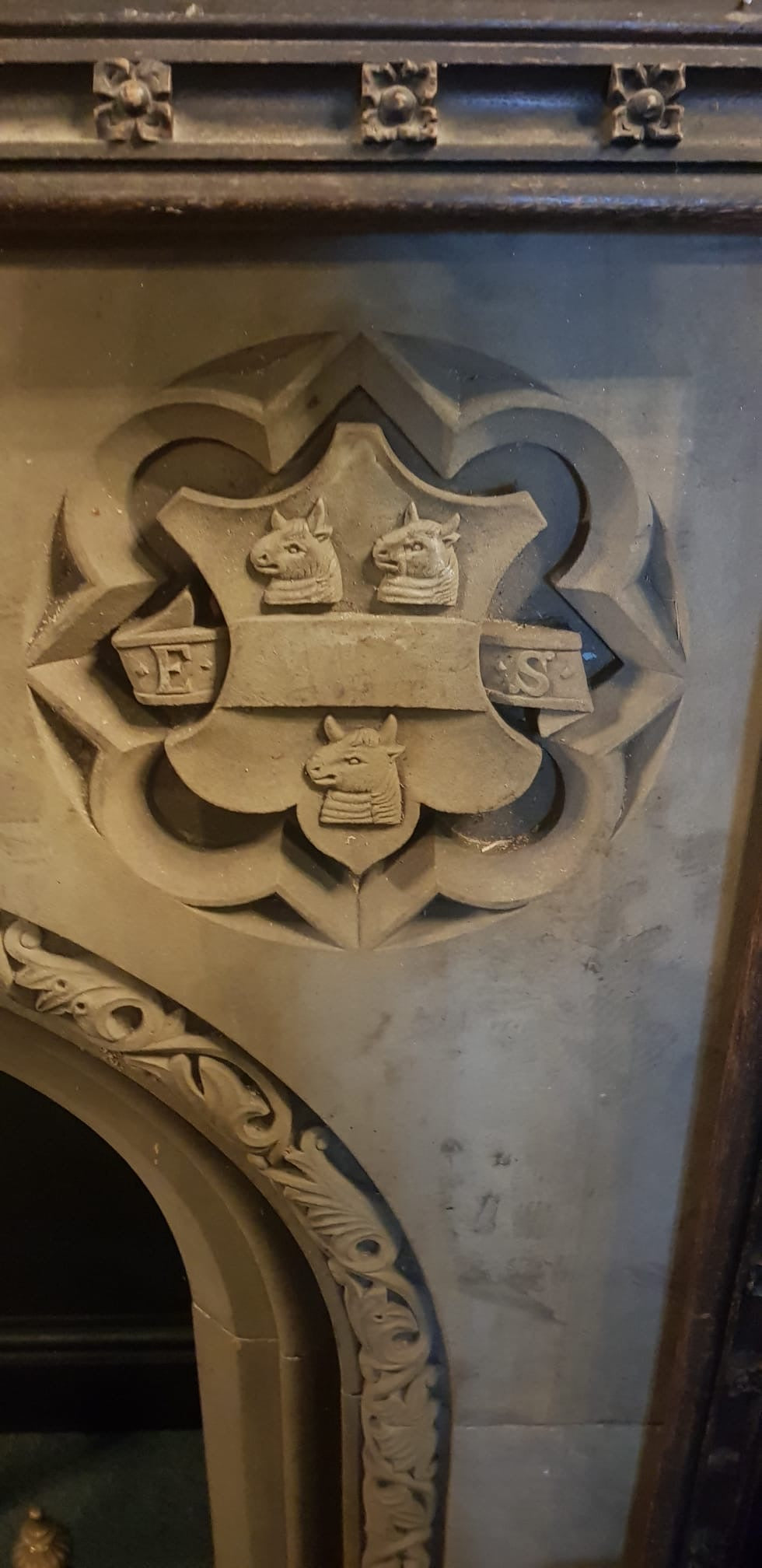 The centrepiece of the room’s heraldry is the **English Royal Coat of Arms** (1405–1603), which harks back to the era of Sir John’s ancestors and the construction of Urmston Grange. The arms feature **three passant lions**, representing the English royal family, and **fleurs-de-lys**, symbolising the French royal family, a reminder of the historical ties between England and France during the medieval period.