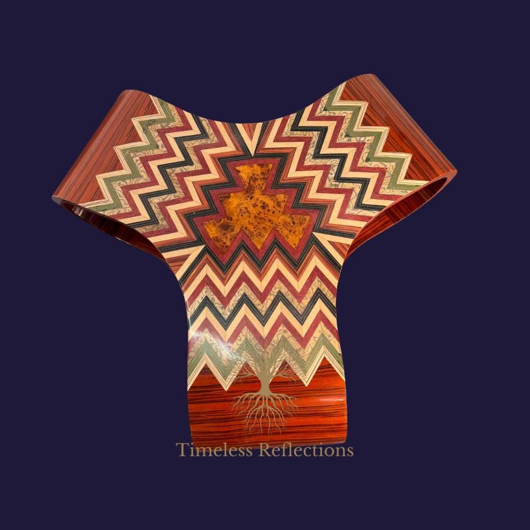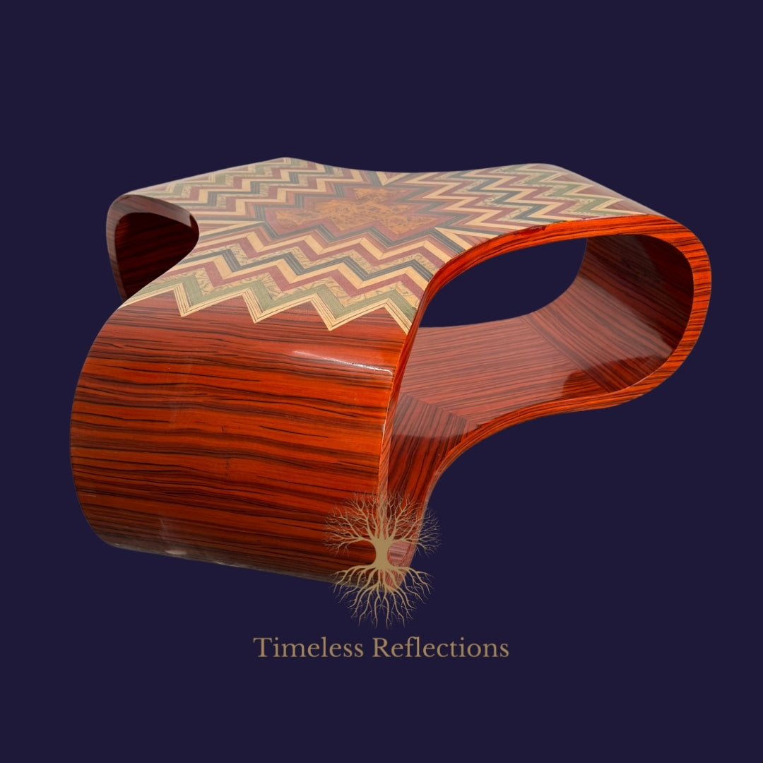 Infuse your living space with a dynamic interplay of geometry and luxury, embodied in the Arleston Coffee Table. Featuring a flowing, curved design with a bold chevron marquetry, this piece captures the eye and commands attention. The intricate inlay work of contrasting veneers, from vibrant rosewood to rich burl, adds a vibrant burst of colour while maintaining a sense of elegance. Its fluid form is not just a visual masterpiece but also a functional piece, offering a unique surface for your living area.
