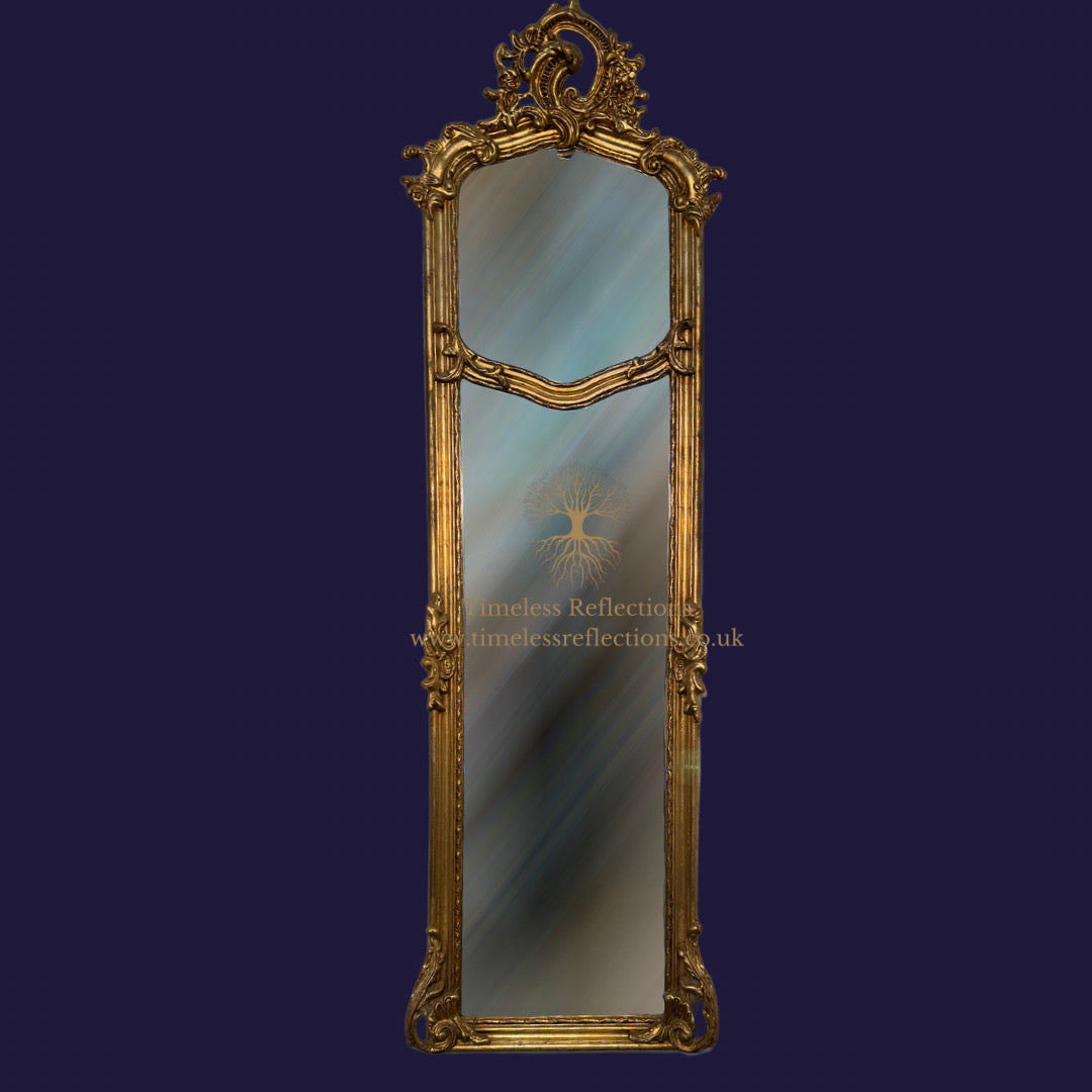 The Avondale Gilt Tall Mirror is a stunning example of 19th-century elegance with intricate detailing in its gilt frame. Featuring a tall and slender design, this mirror is perfect for creating an illusion of space and adding a touch of sophistication to your interior décor. The top crest showcases elaborate scrollwork, enhancing its regal presence. Ideal for hallways, bedrooms, or living rooms, this statement mirror beautifully reflects light and enhances any room’s grandeur.