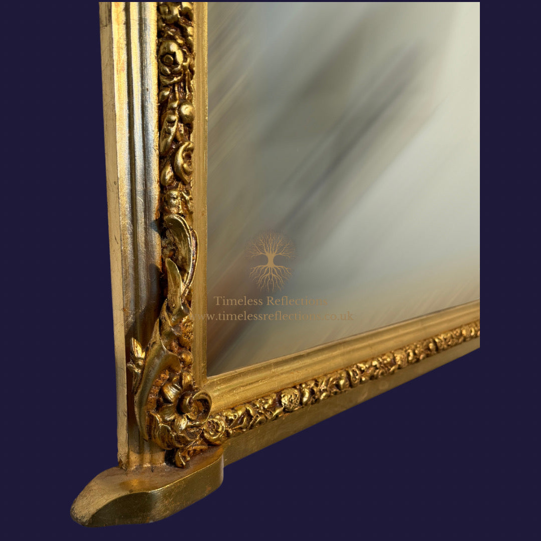 This mirror showcases a sweeping arch frame adorned with intricate floral carvings and ornate details that echo the grandeur of classic European design. Handcrafted and finished in a luxurious gold leaf, the Imperial Arch Mirror is a magnificent addition to any interior, enhancing both light and space with its expansive reflective surface.