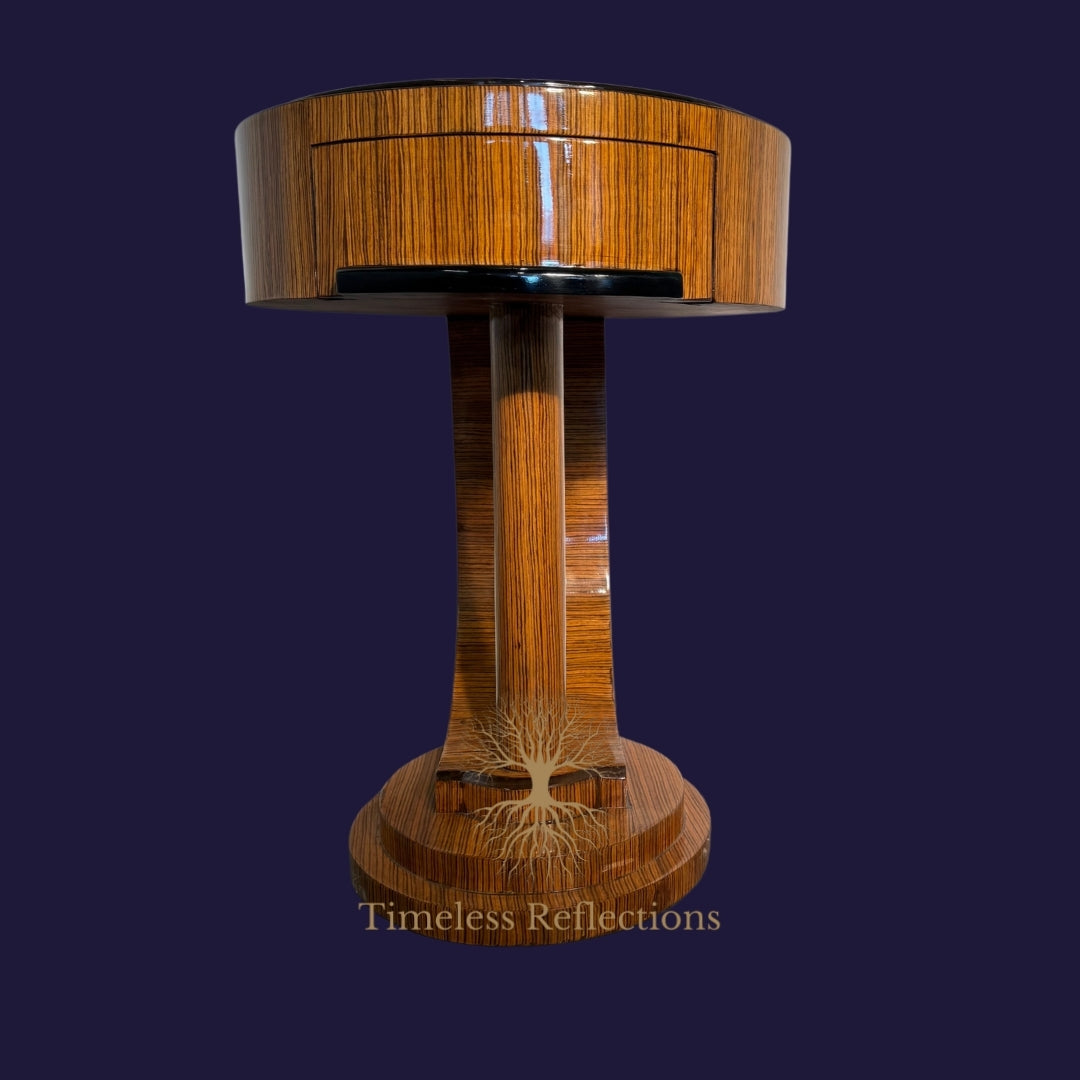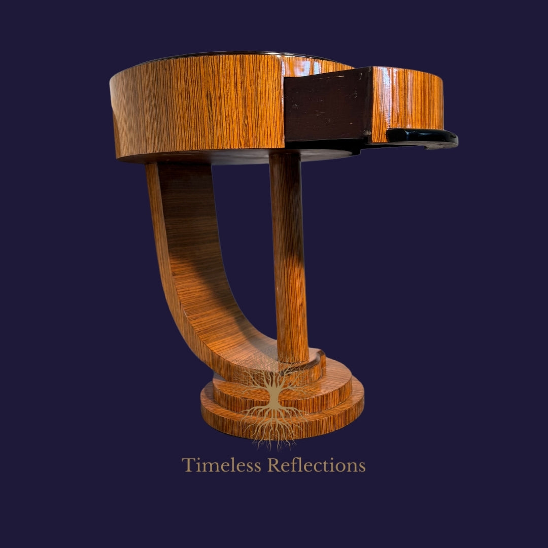 Elegant in its simplicity yet striking in design, The Orla Side Table boasts a beautifully curved base that adds a sense of movement to its silhouette. Crafted from rich, polished wood with a stunning grain pattern, this side table exudes both warmth and refinement. The round top features a geometric inlay, adding a modern touch to its classic form. Complete with a discreet drawer, it combines functionality with artistic flair, making it the perfect accent piece for a variety of interior styles. A seamless blend of form and function, The Orla invites admiration in any space.